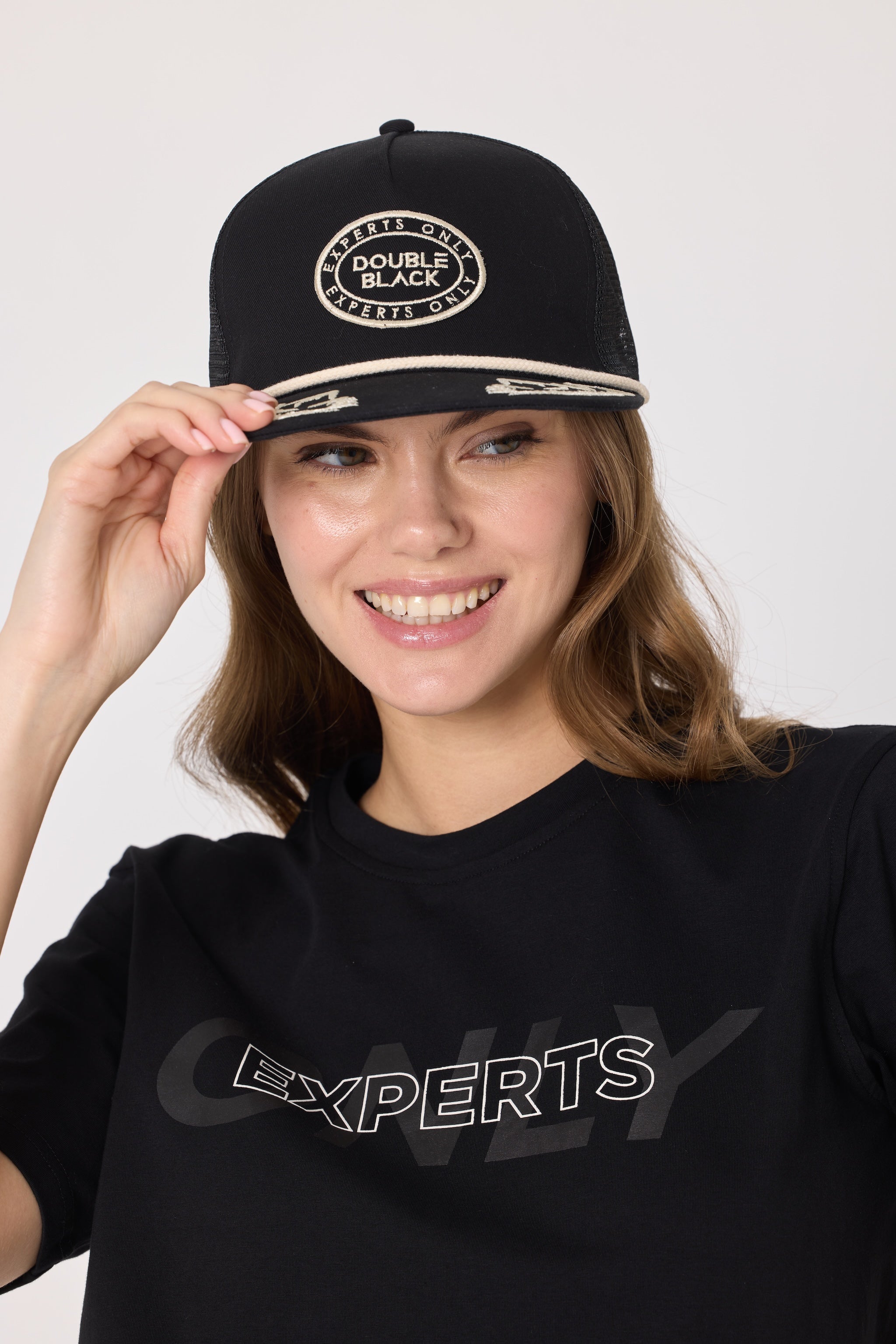 The Canvas Trucker Hat levels up classic outdoor headwear with durable canvas construction, a mesh back panel, and bold, slope-ready styling. The embroidered mountain design across the brim gives it visual punch, while the “Experts Only” patch and Double Black branding keep the energy clean and confident.